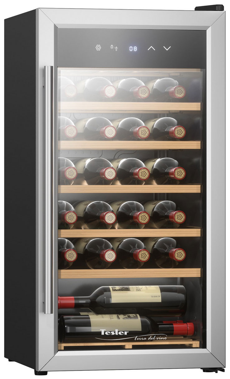 Рамка из нержавеющей стали придает устройству стильный и современный вид, а удобная ручка делает использование шкафа более комфортным. Благодаря элегантному дизайну винный шкаф Tesler легко впишется в интерьер городской квартиры, загородного дома или офиса.