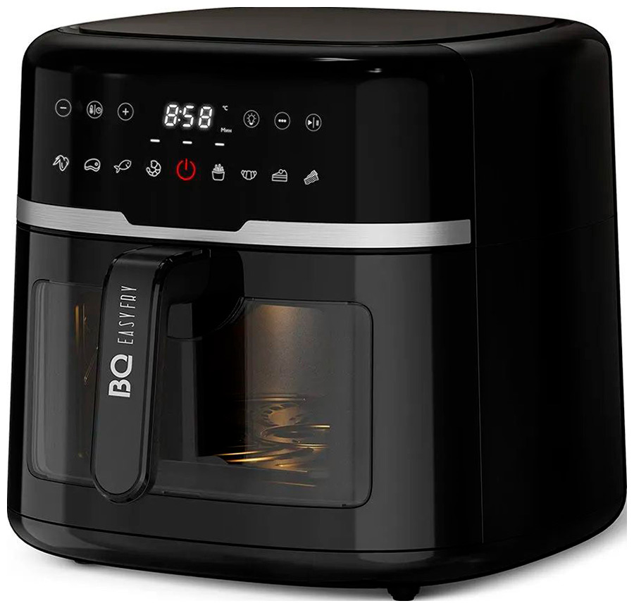 Управление аэрогрилем BQ GR2007 комфортно и интуитивно понятно благодаря сенсорному LED-дисплею. Это позволяет быстро и удобно выбирать нужные режимы и настройки для приготовления. А благодаря смотровому окну, вы всегда сможете следить за процессом готовки, не открывая крышку и не теряя ценные питательные вещества.