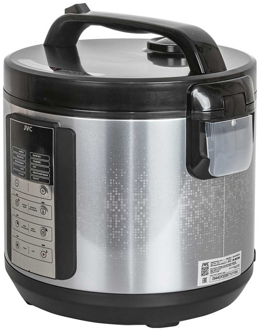 Мультиварка JVC JK-MC500 с экологичной вместительной алюминиевой чашей объемом 5 л и антипригарным покрытием Daikin имеет 11 автопрограмм приготовления и 145 программ ручной настройки. Такие технологичные функции, как мультиповар, СМАРТШЕФ плюс, автоподогрев и его предварительное отключение, разогрев, отложенный старт и функция автоочистки обеспечат максимальный комфорт в повседневном приготовлении блюд любой сложности. Вы сможете приготовить суп или бульон, плов, рис или крупы, любую выпечку, пасту или макароны, йогурт, молочную кашу и еще массу различных мясных и овощных блюд с программами варка на пару, тушение, жарка и запекание.