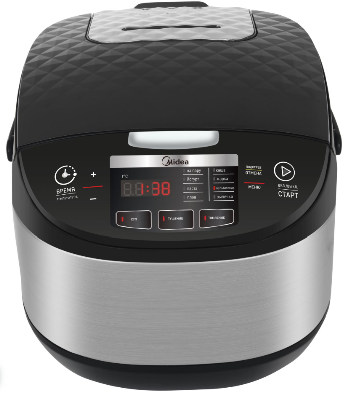 Устройство оснащено большим информативным дисплеем, на котором отображаются все параметры его работы, включая время, оставшееся до конца программы. Когда всё будет готово, вас позовёт к столу звуковой сигнал.