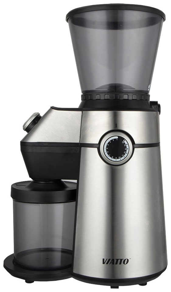 Кофемолка VIATTO VA-CG7LUX предназначена для помола кофейных зёрен для последующего приготовления эспрессо, латте, капучино, лунго и других напитков на кофейной основе. Степень помола регулируется. Корпус выполнен из пластика с облицовкой из нержавеющей стали, бункеры для зерен и молотого кофе - из пластика.