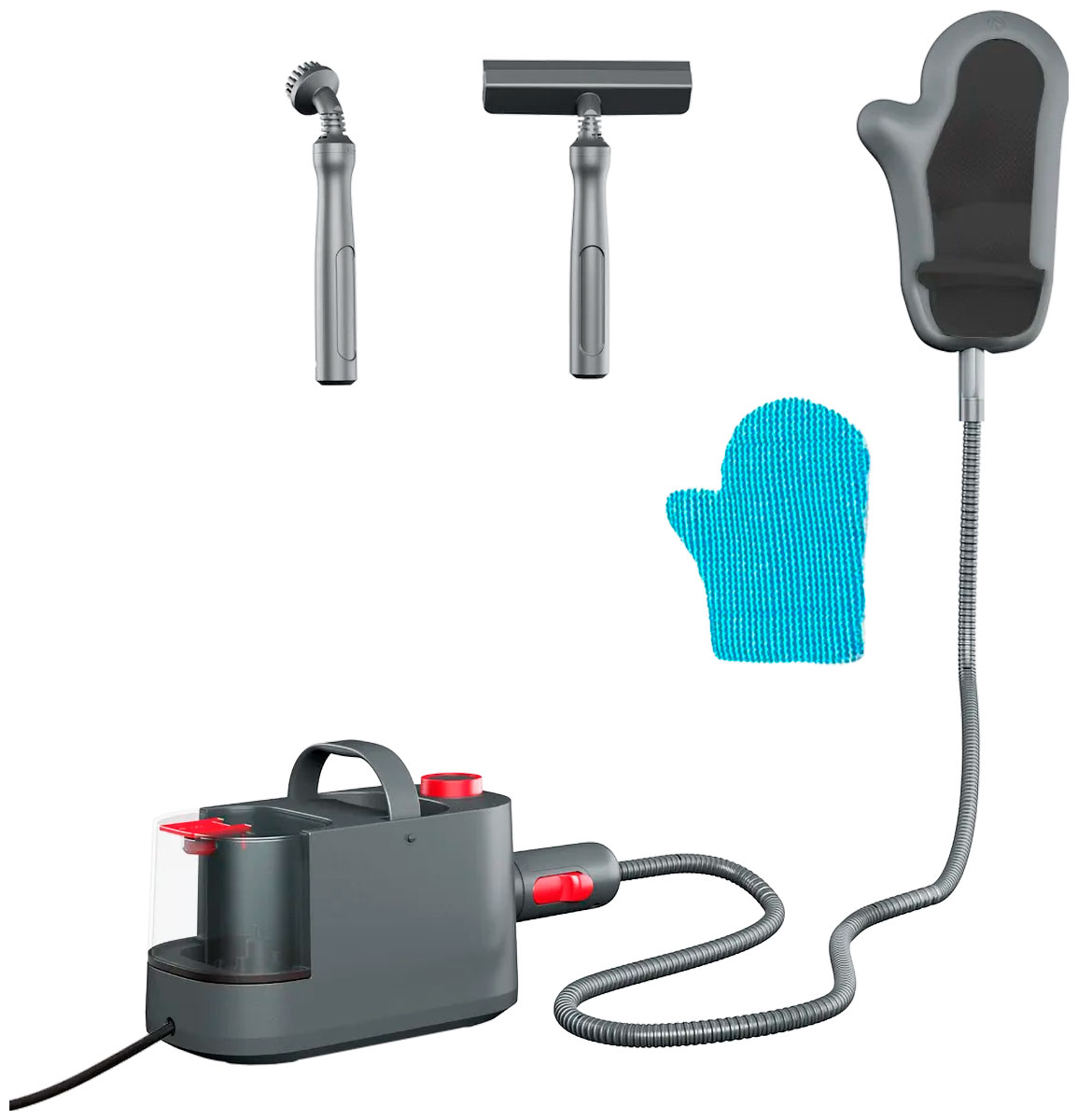 Благодаря 3 мультифункциональным насадкам (паровая перчатка, угловая щетка, насадка-скребок) вы сможете помыть окна и зеркала, очистить мягкую мебель, полы и ковры, удалить даже застаревшую грязь с плиты, духовки и стенок, привести в порядок ванную комнату и даже отпарить одежду.